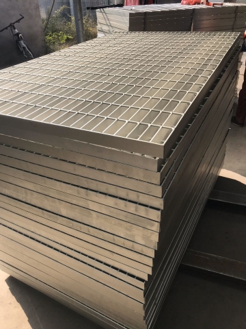 2、從工藝上看,傳統(tǒng)的鋼格柵板需要噴砂,端切,組焊,刷漆;本實用新型需要端切,組焊,噴涂;由此可見,本實用新型的加工步驟更少,另外,本實用新型的組焊過程更為簡單;